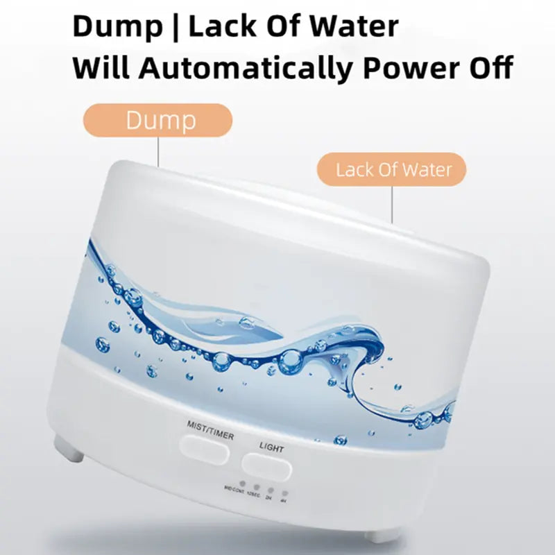 With its sleek and minimalist design, this diffuser operates on ultrasonic technology, effortlessly purifying the air while infusing it with your favorite soothing aroma. The generous 500ml tank capacity ensures long-lasting enjoyment, while the built-in air humidifier property adds moisture to the environment for enhanced comfort.